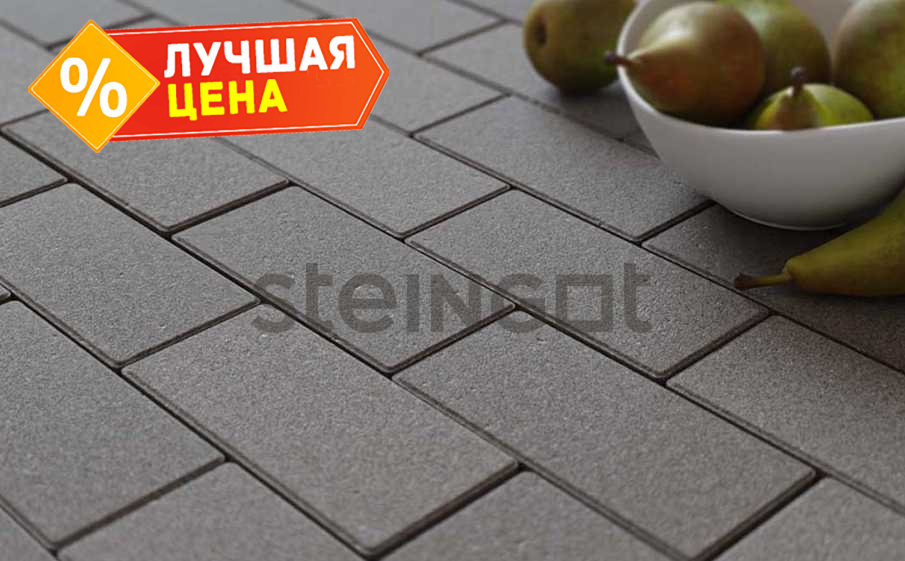 Плитка тротуарная Steingot Моно, Прямоугольник, с фаской 1,5х1,5, серый, 200х100х40 мм